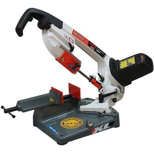 The NG120XL band saw is our most popular benchtop model and miter-cuts up to 60ᵒ in one direction, is powered by a 1.7 HP variable speed motor, and includes a hard-stop for cutting multiple parts the same length. The NG120XL cuts 60% faster due to the NG reverse-rotation blade.