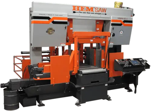 The H260-DC band saw operates using a touch screen control mounted in a swing-away console. A 48” servo twin ball-screw bar-feed is standard and a 120” version is optional. A full-stroking main vise positions automatically with the powered guide arm. The Cut Watcher® System and chip auger are standard.