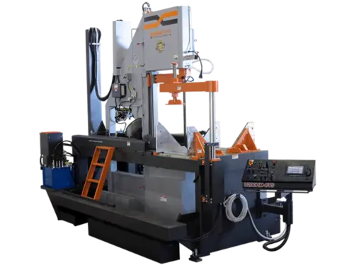 The V200HM-CTS band saw is operated by a touch screen control that is located in a swing-away console at the front of the saw and allows the operator to enter an angle and the arm will travel to that position and stop.