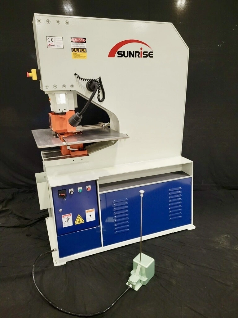 SUNRISE Series PM Hydraulic Punching Machines range in capacity from 38 Tons to 220 Tons. All Model PM Hydraulic Punching Machines from SUNRISE feature High-Speed cylinders with two-position foot pedals. Special-designed hydraulic cylinders enable the machine to retract faster, also making the cylinders slimmer.