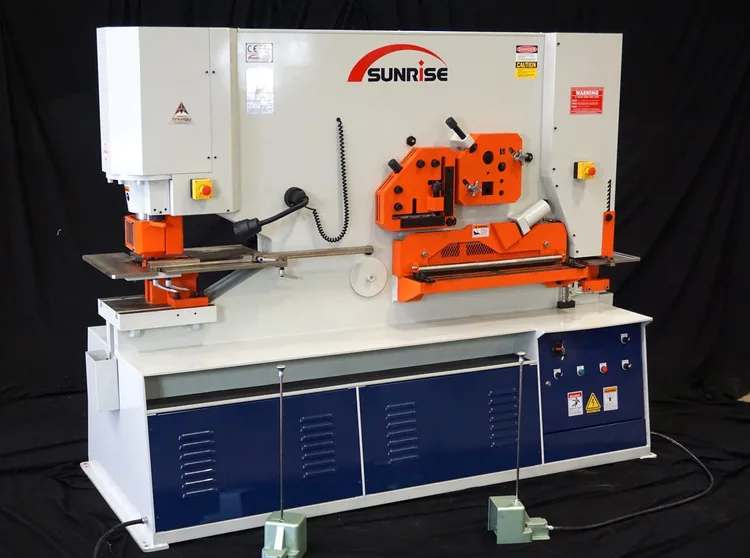 SUNRISE Model IW Dual Cylinder Ironworkers range in capacities from 66 Tons to 185 Tons and feature two High-Speed cylinders with two-position foot pedals. The dual-cylinder series ironworkers are built with the SUNRISE tradition of well engineered products for high power, quality and reliability at an incredible price.