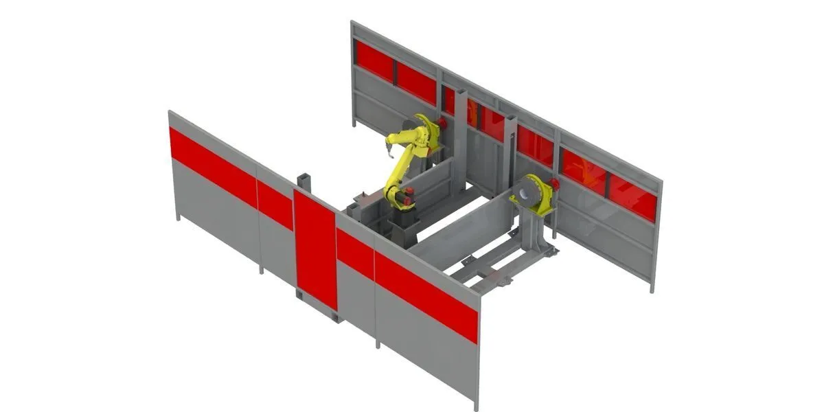 Dual sided robotic welding cell . Load one zone while other zone is welding. Full Integrated Zoned light curtain safety system. This cell gives you the ability to have zero down time. Can accept any welding robot.